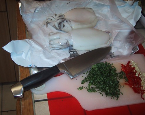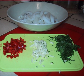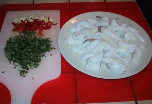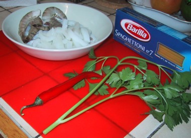 Spaghetti - Sepia - Peperoncino - Knoblauch - Olivenöl - Salz - Pfeffer - Petersilie